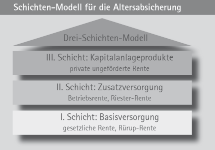 Die Leistungen der gesetzlichen Rentenversicherung werden weiter abnehmen. Die darüber liegenden Schichten gewinnen daher zunehmend an Bedeutung.